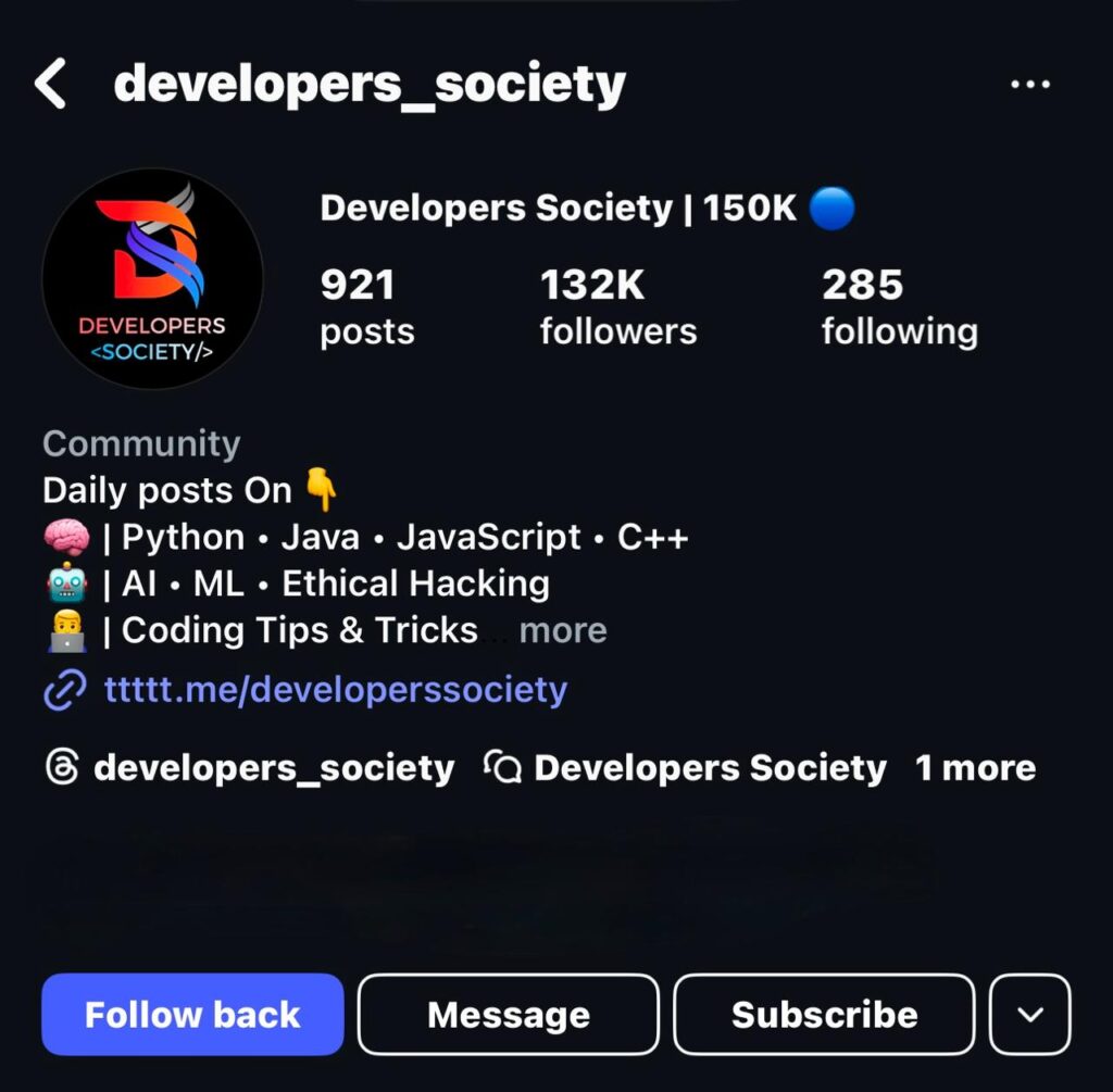 A Strong Community of 130K+ Developers and Coding enthusiasts on Instagram